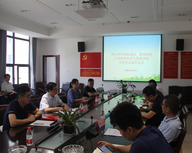 周正朝院长充分肯定了西安市环境监测站,在环境监测、建设项目评价等方面的优势与贡献,同时介绍了地理科学与旅游真人娱乐城