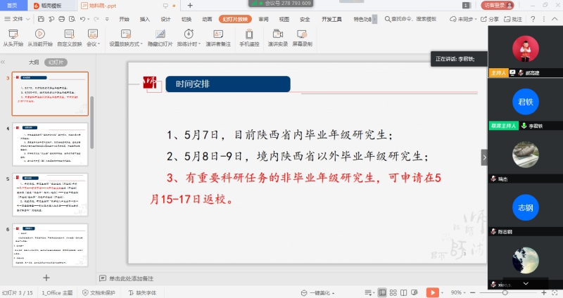相关文件精神,就研究生返校时间、论文答辩等相关问题进行了交流讨论,并就相关情况作了反馈。