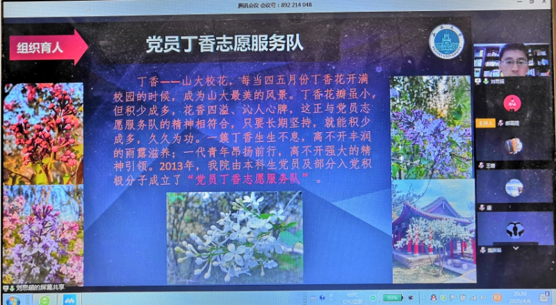 、学生、学工和学术四个层面分别阐述了高校辅导员工作的内容、任务和面临的挑战。接着从辅导员素质提升的5个过程,即陪伴——理解——信任——引领——人才等五个环节阐述了辅导员工作做好学生引路人的五个成长过程,同时强调了要注意做好6个度,即做好辅导员工作的要有高度、有深度、有态度、有热度、有温度、有尺度,得到学生的认可,总结就是辅导员的工作会映射在自己的学生身上。最后他为我们分享了组织育人——基层党建传芬芳和实践育人——科技创新结硕果两个工作案例。