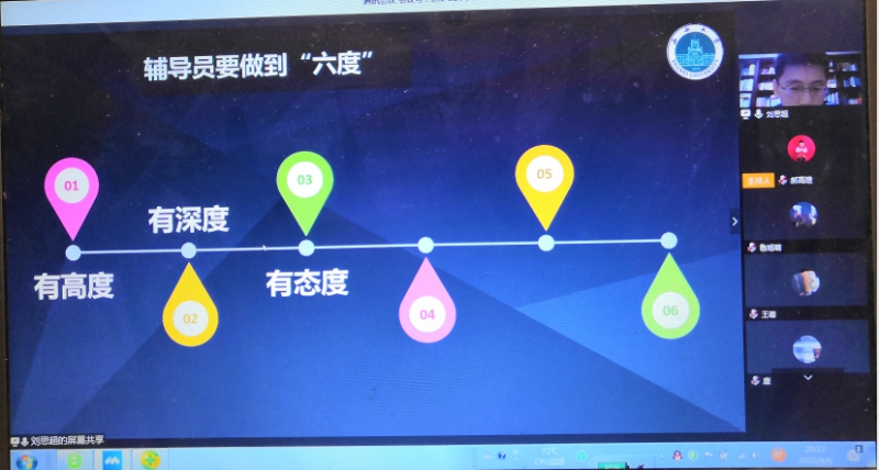 党委副书记、全国辅导员年度人物刘思超老师应邀做了交流分享,工作室全体成员参加了会议。会议由工作室负责人、真人娱乐城