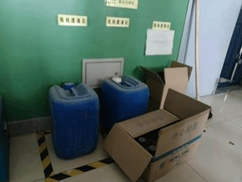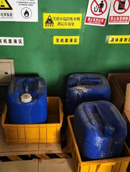 1.1613(安全员:王利军老师)药品柜里部分药品没有打印二维码标签;实验台上自己配置的药品没有按照要求粘贴标签(配置药品需要注明成分、溶剂、浓度、配置时间、配置人等信息);高浓度废液(铬酸洗液)应按照要求将较浓溶液(泡过铬酸的瓶子请用适量水洗涤至少三次,倒入废液桶,至少看不到明显洗液颜色方可再在水池正常清洗)倒入废液桶再统一收集处理,铬离子有毒,不可直接排入下水道。
