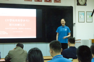 2021级地理卓越班全体同学接受捐赠。学生代表高若晗对出版社总社的帮助表示感谢,表示《中学地理教学参考》是学生成为卓越教师必不可少的精神食粮,地理卓越班全体同学将牢记“扎根西部,追求卓越,甘于奉献,教育报国”的西部红烛精神,造福桑梓,不负期望。