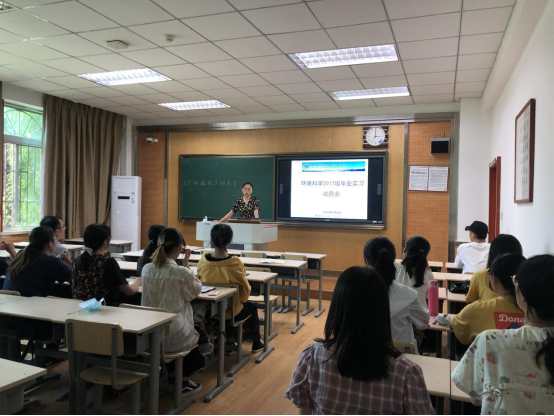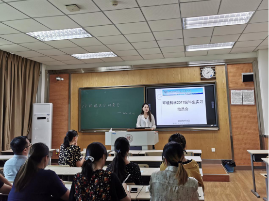 在文渊楼3101教室召开了2017级环境科学专业本科生毕业实习动员会。主管教学的李晶副院长、2017级本科生辅导员张思豆老师、带队老师邵天杰和肖舜、及2017级环境科学全体学生参加了此次动员会,会议由邵天杰老师主持。
