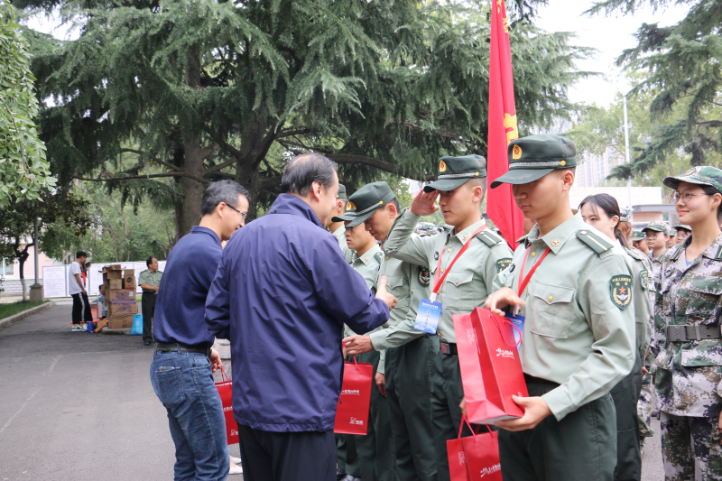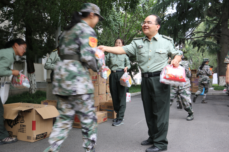 领导老师向参训新生发放了精心准备慰问品,同时也慰问了全体教官和带队干部。