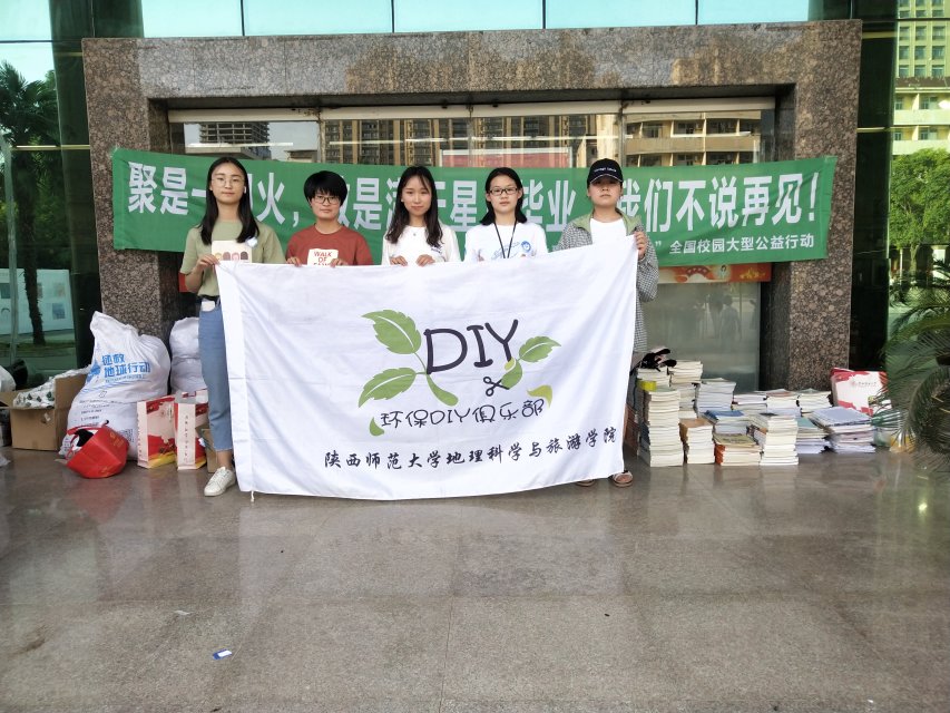 环保DIY俱乐部于5月31日下午及6月1日全天在喷泉广场举办了纺织品与书籍回收活动。用环保之举为告别校园生活增添一份既清新又温暖的毕业纪念。