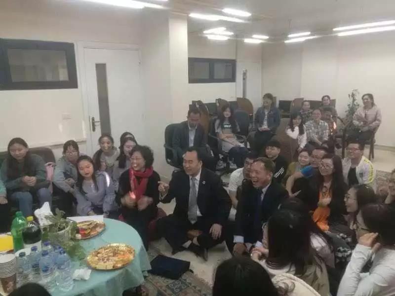 的各级领导与老师做出汇报,旨在解决问题,调整方向,为2016级学生的访学生活提供宝贵的意见。访学生党小组负责人还结合党的十九大及两会精神作出报告,表示会牢牢把握访学学生的思想动态,积极宣传马克思列宁主义、毛泽东思想、“三个代表”重要思想、科学发展观、社会主义核心价值观。之后评估团一行走访了学生宿舍与同学们亲切交谈,了解了访学生的日常学习和生活,并给出了宝贵的意见,学生们也表示要珍惜机遇,提高阿拉伯语水平,进一步加深对摩洛哥社会文化的了解。