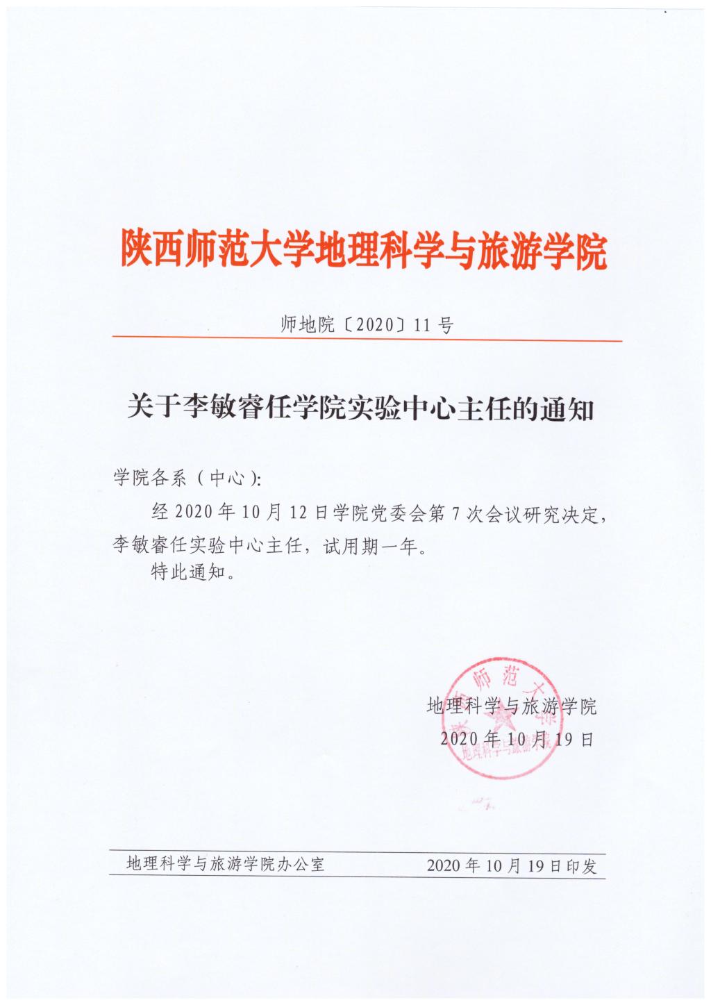 关于李敏睿任真人娱乐城 实验中心主任的通知