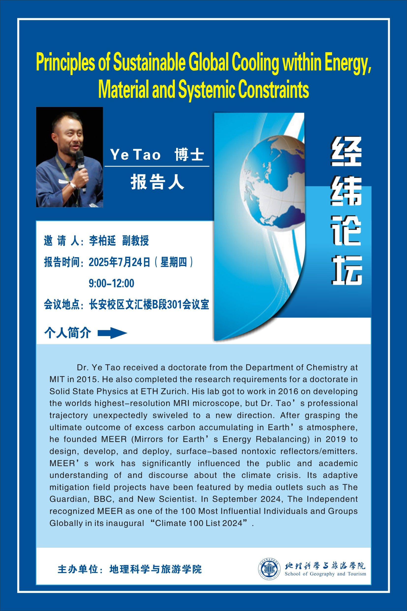 真人娱乐城 --Principles of Sustainable Global Cooling within Energy, Material and Systemic Constraints