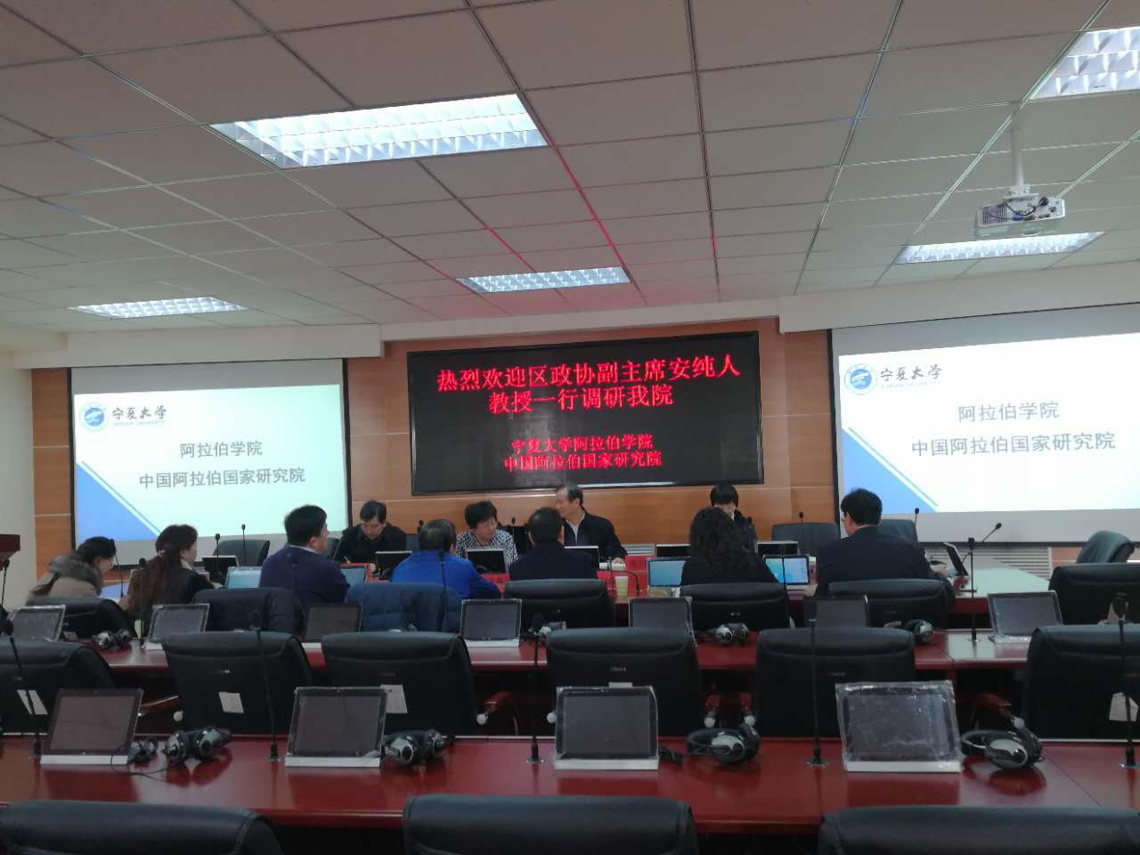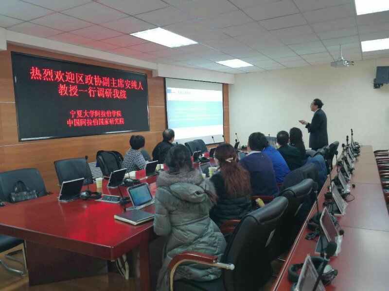 安纯人听完汇报后,就两院”在对接国家“一带一路”倡议与中国阿拉伯国家合作过程中的人才培养、学术研究、学科建设、智库作用、社会服务等方面取得的成绩给予了充分肯定,并就“两院”在外语学科与智库建设发展方面提出的建议,需要自治区协调解决的问题。