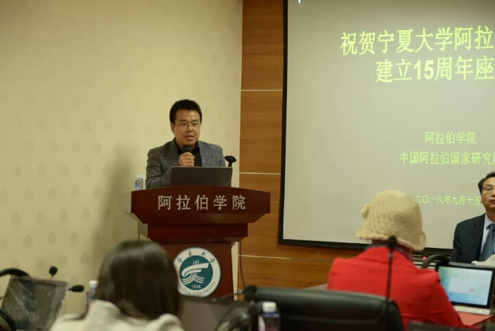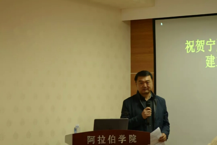 座谈会在谢应忠副校长的致辞下隆重开始,谢应忠副校长在讲话中要求两院发扬校庆精神,在新时代下,加快“三位一体”人才培养体系建设,推进阿拉伯语“新文科”“新语言教育”建设和发展,服务“一带一路”倡议。