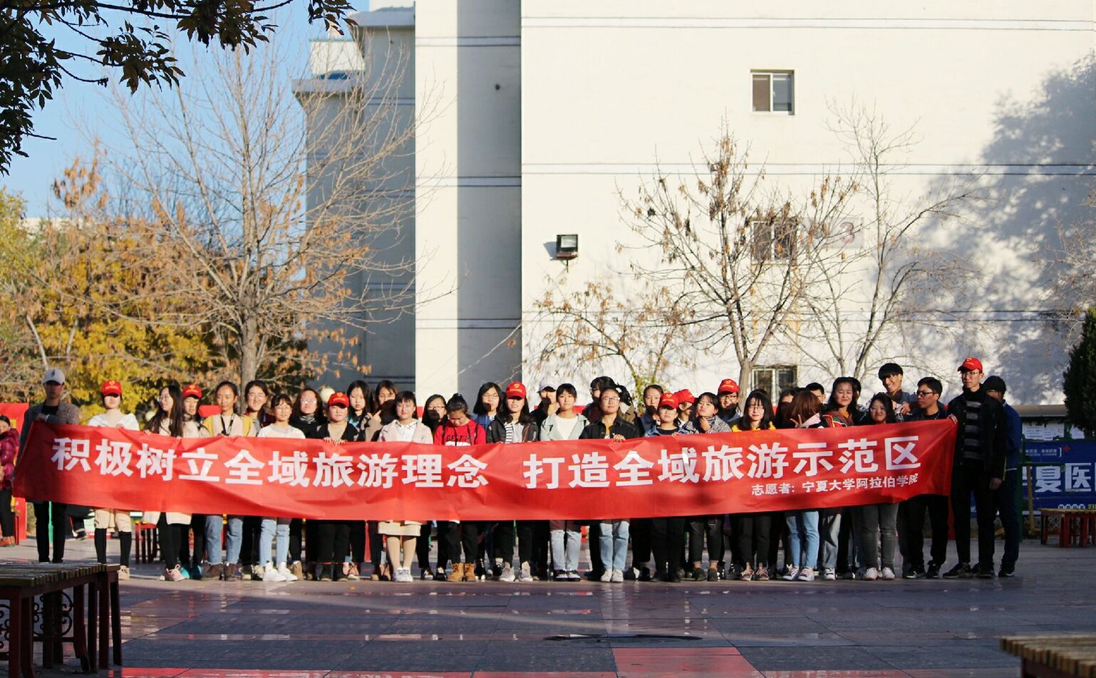 10月26日下午两点,真人娱乐城 团委学生会组织学生于银川市西夏区文昌街道共享社区参加了“全域旅游”推广活动。