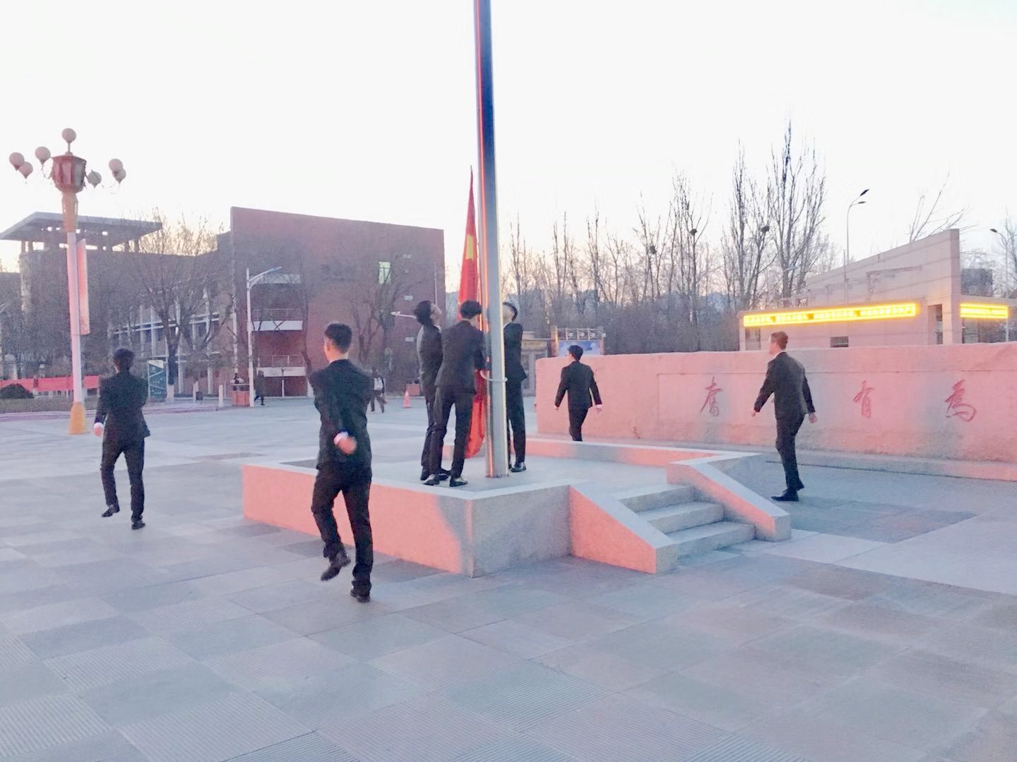在A区主楼广场举行了庄严的升国旗仪式。真人娱乐城