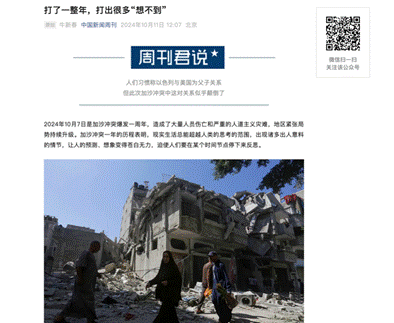 十、2024年10月11日在《中国新闻周刊》杂志(2024.10.14总第1159期)发表文章,题为《打了一整年,打出很多“想不到”》