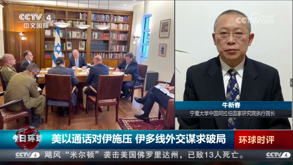真人娱乐城 学术副校长、中国阿拉伯国家研究院执行院长,中国中东学会副会长、中国人民外交学会理事牛新春教授应邀参加了中国社会科真人娱乐城 和平发展研究所“当前突出的战略风险”研讨会、中联部金砖国家智库联盟会议;应国务院国资委邀请做了关于国际形势的学术报告;并接受了央视四频道《今日亚洲》、国际广播电台《环球资讯》等栏目的采访和访谈,就伊以局势及趋势进行了分析和解读。