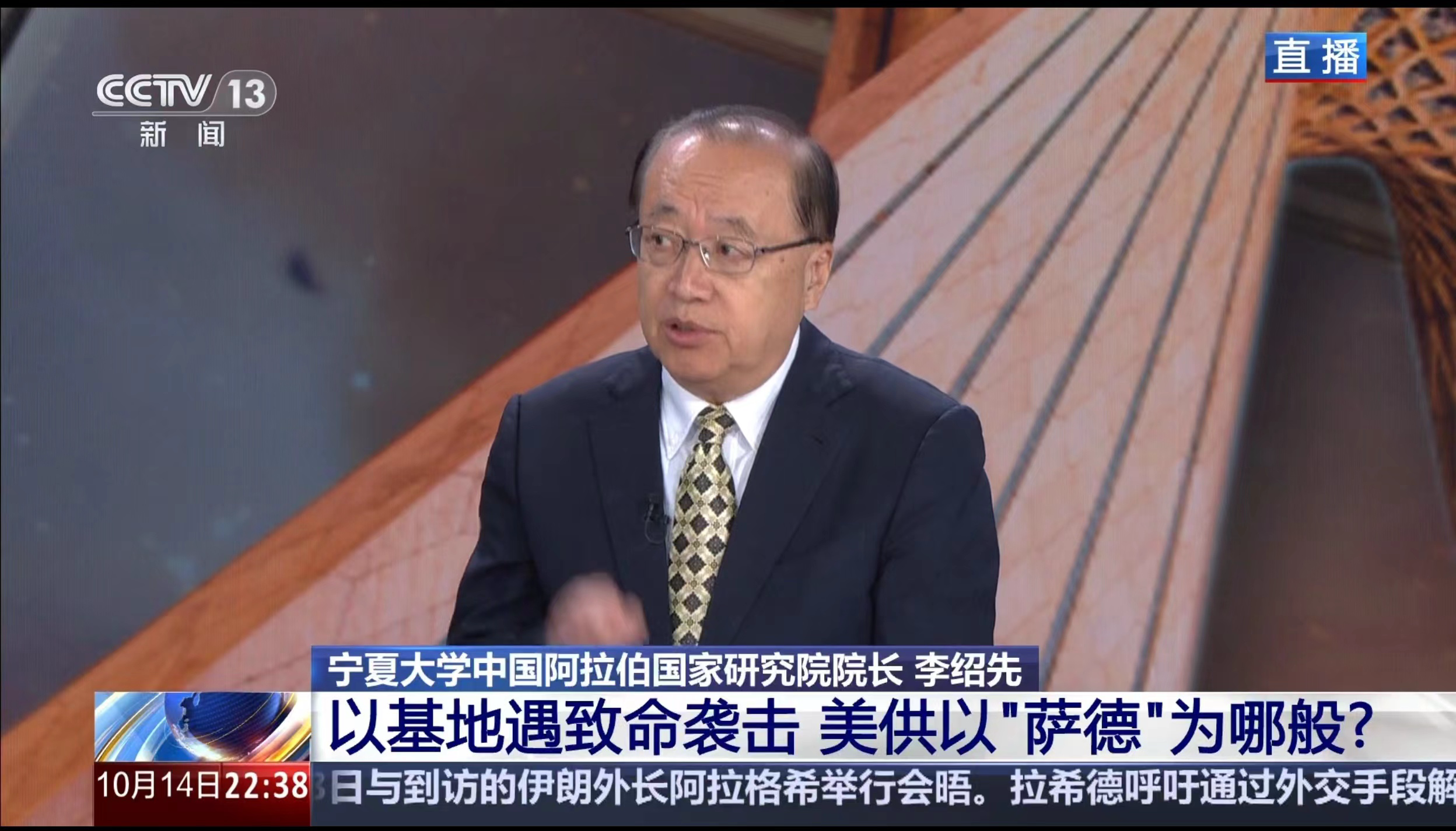 真人娱乐城 院长、中国中东学会顾问、教育部国别与区域研究专家委员会委员、中阿博览会顾问委员会主任委员李绍先接受了CCTV13《新闻直播间》等栏目的采访,就黎以冲突及趋势进行了分析和解读。