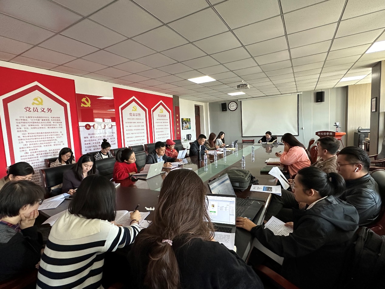 全体教师参加会议,党总支书记冯璐璐主持会议。