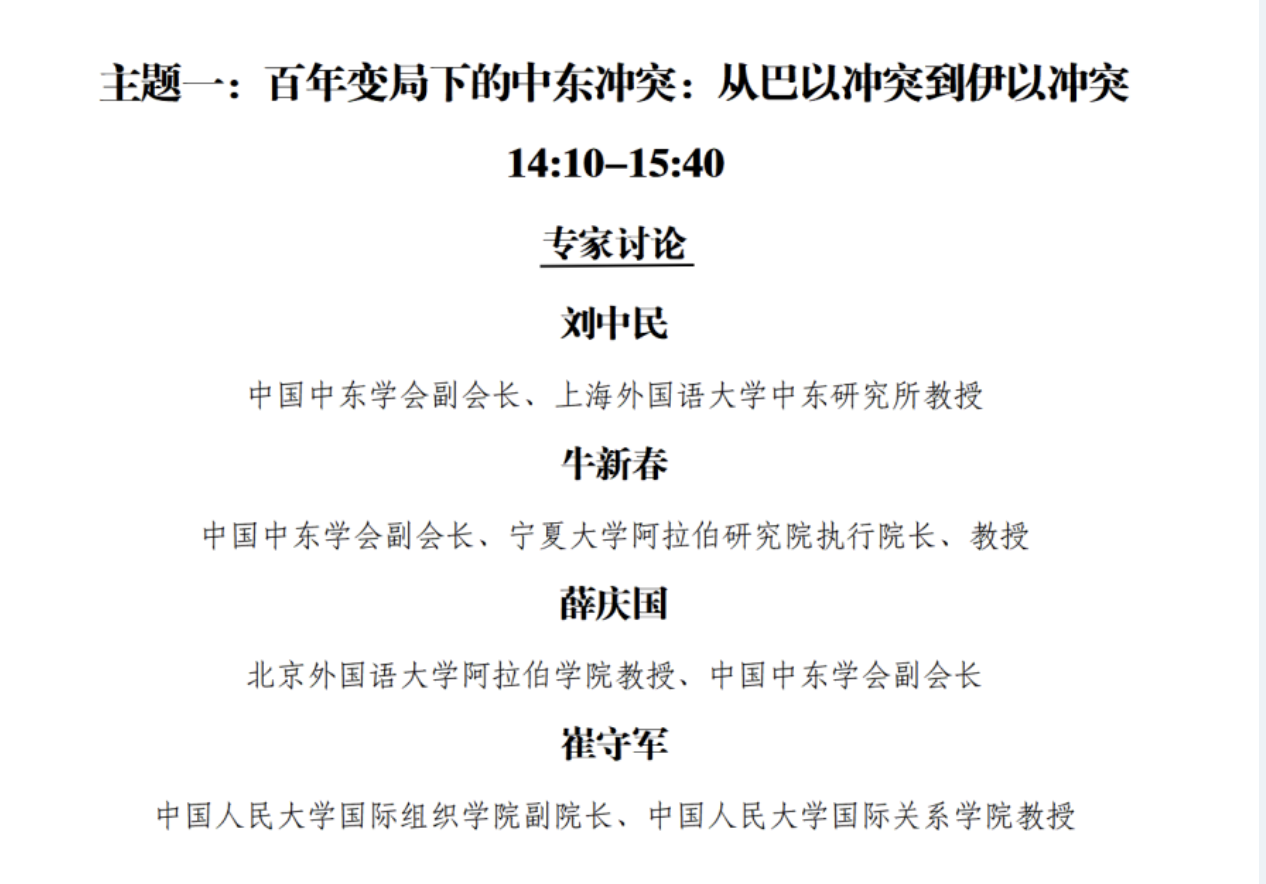 一、6月26日牛院长参加2025中国国际问题“动荡变革期的世界秩序与中国对外战略”论坛,并在《百年变局下的中东冲突:从巴以冲突到伊以冲突》主题发言。