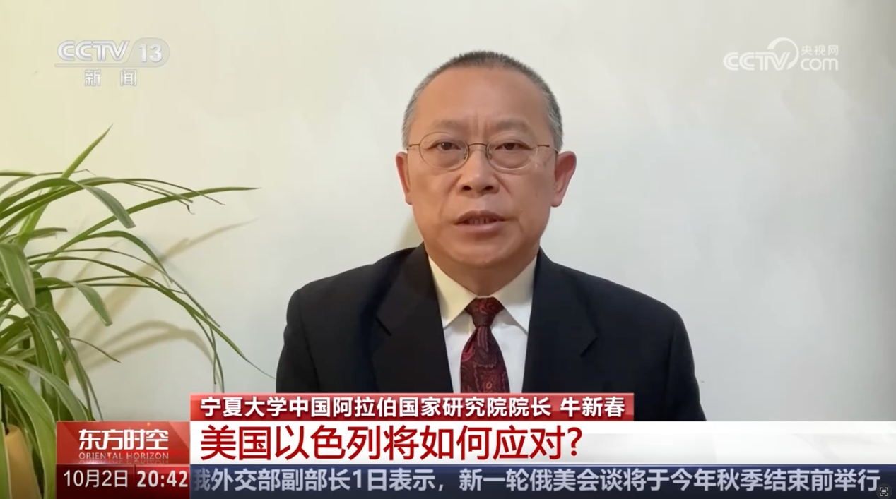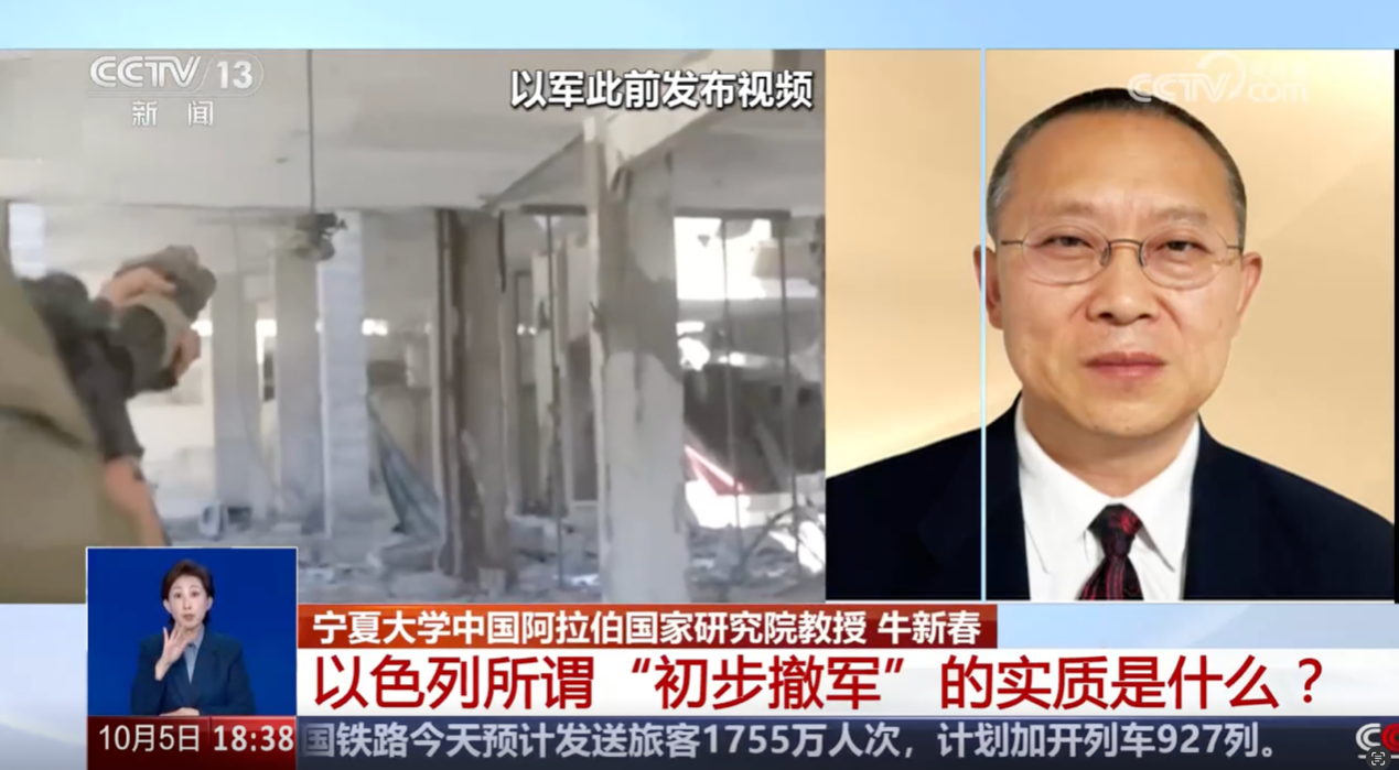 二十三、10月5日牛校长接受中央广播电视总台环球资讯广播《闪评》栏目题为《以色列与哈马斯马上要谈了!谈什么?怎么谈?》采访