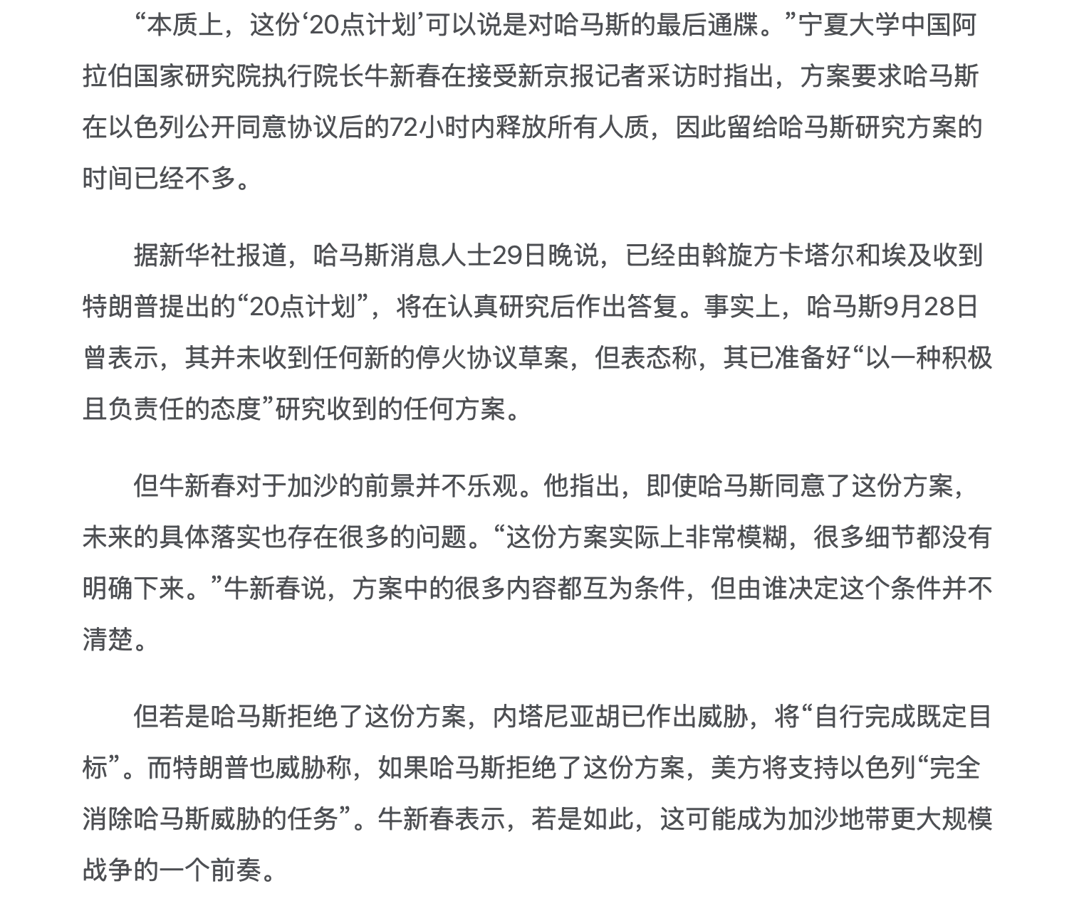 十三、9月30日牛校长接受新京报题为《特朗普的加沙“20点计划”,能带来和平吗?》采访