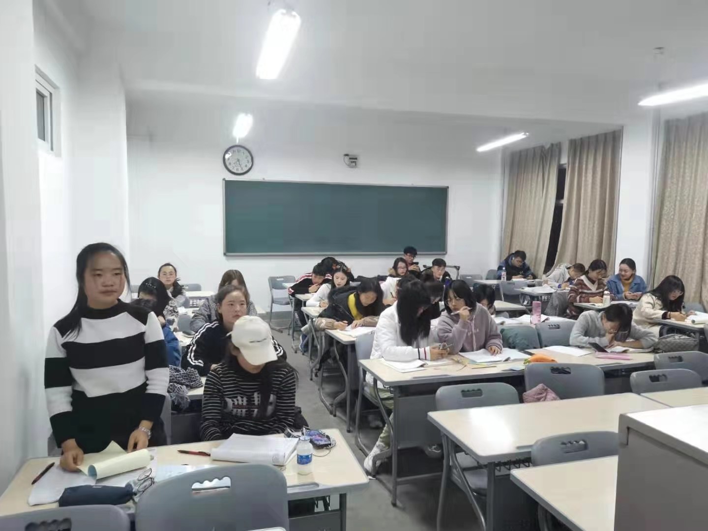 首先,各班团支书向本班同学传达了《纲要》精神。接着,各班班长结合具体事例和相关影视片段,向全体团员讲述爱国主义的具体实践,介绍和分享了相关经典人物事迹。随后,各班同学积极讨论,书写各自感想并踊跃发言,讲述了个人对于《纲要》的理解。最后,全体同学起立奏唱国歌。