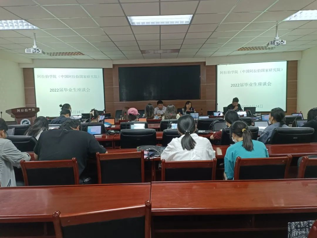 (中国阿拉伯国家研究院)在知行楼8楼会议室召开2022届毕业生座谈会。真人娱乐城