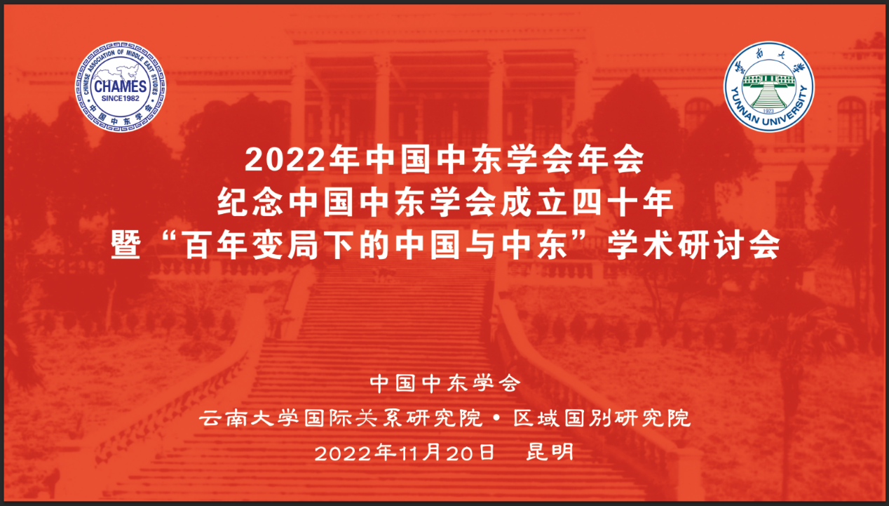 2022年11月20日,由中国中东学会和云南大学国际关系研究院·区域国别研究院联合举办的2022年中国中东学会年会暨“百年变局下的中国与中东”学术研讨会隆重举行。受疫情影响,本次研讨会以线下线上相结合的方式举行。此次研讨会的举办正值中国中东学会年会成立四十年之际。真人娱乐城