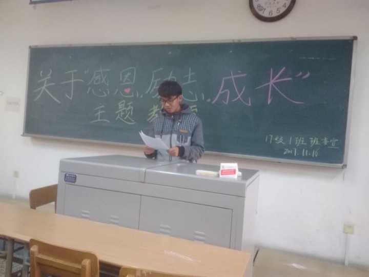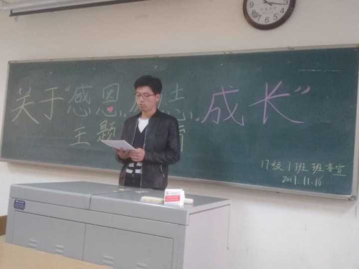 组织2017级各班分别于贺兰山校区第一教学楼B302、B303、B304教室召开 “感恩,励志,成才”主题班会。